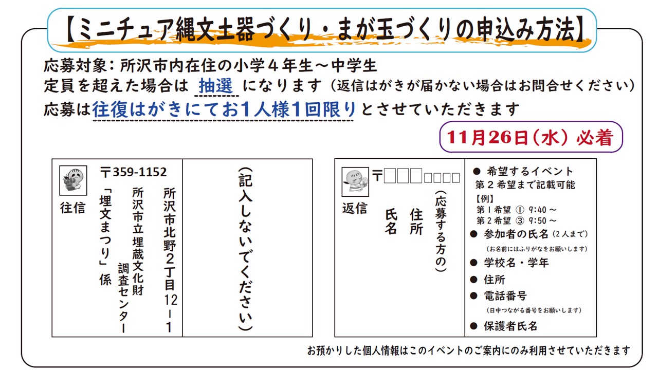 ミニチュア縄文土器づくり・まが玉づくりの申込み方法