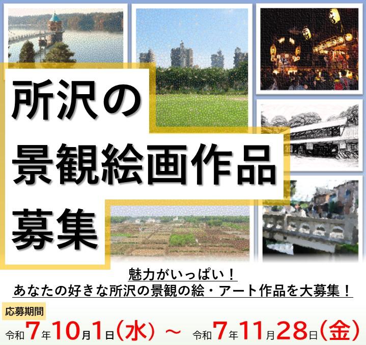 今年度、景観計画を改定することに伴い、改めて皆様がお気に入りの所沢の魅力ある景観を発掘し、広く市内に周知をするため、所沢の景観に関する絵画・アート作品等を募集します。