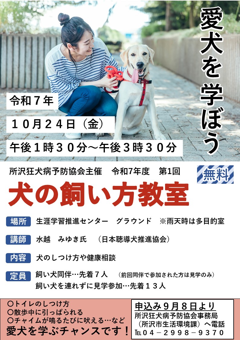 - 前回、犬の飼い方教室で犬同伴で参加していないこと(飼い主の方のみの参加は可能です)
