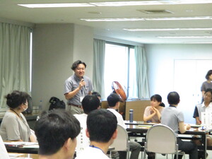 ゲーム終了後は全体で感想を共有しました。カーボンニュートラルの達成の難しさや、経済との両立の困難さなど、ゲームを通じて感じた意見がたくさん出ました。