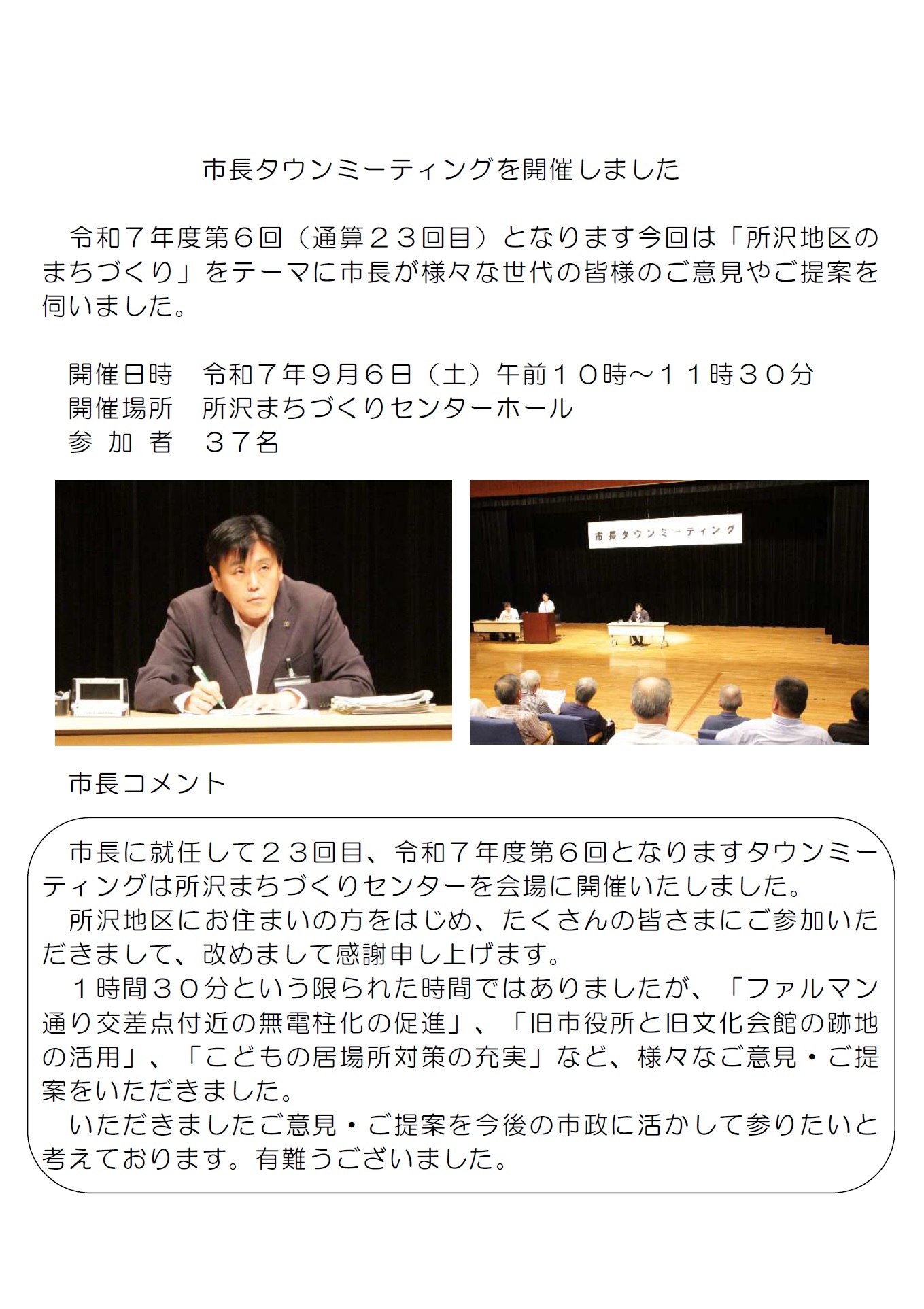- このタウンミーティングで皆様からいただいたご意見やご要望は、今後の住みよいまちづくりに活かしてまいります。