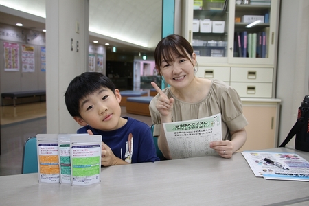 小学生とその保護者を対象に「親子でチャレンジ歯の教室」が開催されました。歯科医師によるむし歯の原因や予防についての講話のほか、1から4のミッションに取り組みました。ミッション1では唾液中のむし歯菌の量をチェックしました。むし歯菌が多かったらどうしようとみんなドキドキ。次のミッション2と3で歯ブラシやデンタルフロスの上手な使い方を歯科衛生士から説明を受けました。最後のミッション4では、こどもたちが20問のクイズに挑戦!積極的に発言をする姿も見られました。夏休みに親子で楽しみながら歯の健康について学べる実りのある時間となりました。